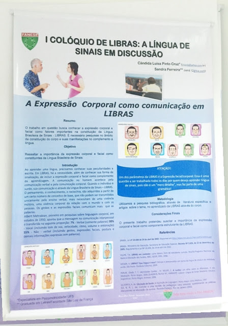 Pôster 3: A expressão corporal como comunicação em LIBRAS. Profa. SANDRA FERREIRA e Profa. Esp. CÂNDIDA LUÍSA;